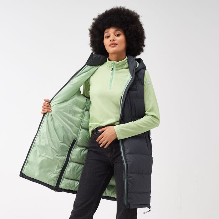 Przytulny i odporny na warunki pogodowe, damski bezrękawnik Ganella o wydłużonym kroju to idealna warstwa odzieży na okres przejściowy. Dzięki zastosowaniu wysokiej jakości ociepliny świetnie chroni przed zimnem i zapewnia wysoki komfort termiczny.